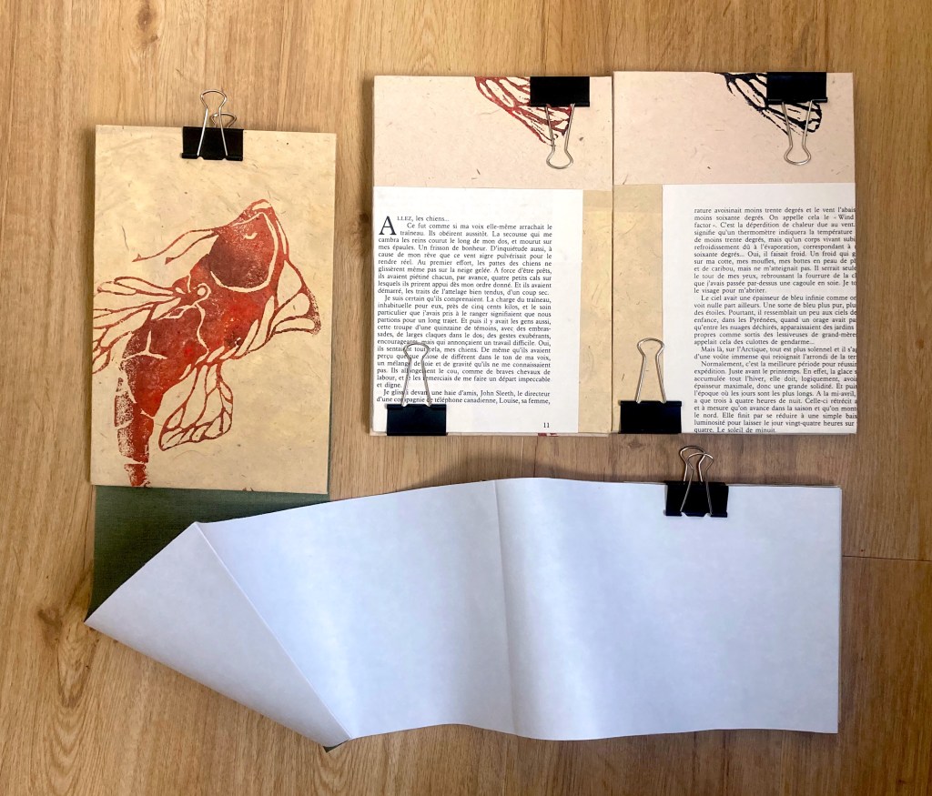 Carnets entièrement fait main . Ils se déplient comme une grande banderole pour permettre d’être libre dans la mise en page.